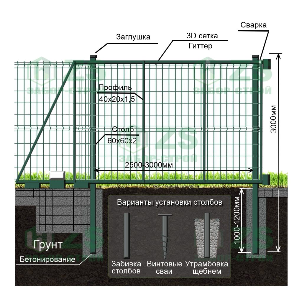 Конструкция откатных ворот из 3Д панелей: